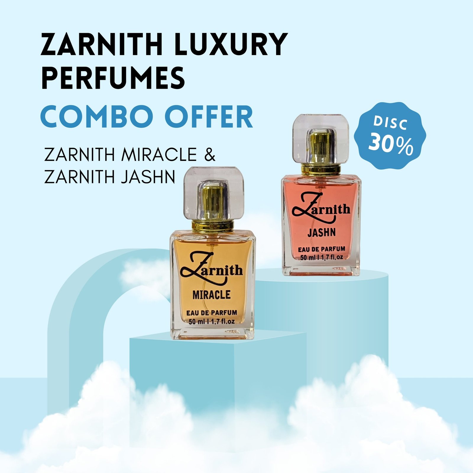 Unleash your aura with *Zarnith’s exclusive combo* featuring two of our bestsellers — *Zarnith Jashn* and *Zarnith Miracle* — now at an unbeatable *30% OFF*.